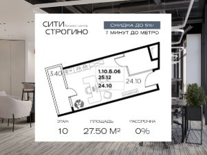 В продаже от застройщика комфортабельный Home-офис площадью 27.2 м² на 8 этаже в премиальном бизнес-центре Сити Строгино. Срок сдачи - 2028 год.