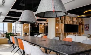 Отделка - полностью готовая, мебель (гардеробная, мини-кухня, открытая переговорная), столы в open space, переговорный стол + стулья)