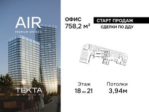 Продается помещение свободного назначения 758.20 м² на 18 этаже бизнес-центра AIR.