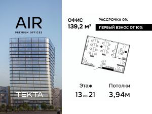 Продается помещение свободного назначения 139.20 м² на 13 этаже бизнес-центра ЭИР.