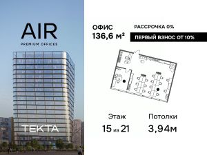 Продается помещение свободного назначения 136.60 м² на 15 этаже бизнес-центра ЭИР.