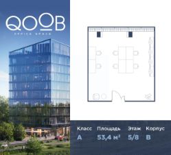 Продается офисное помещение площадью 53,4 м² на 4 этаже, в бизнес-центре QOOB класса "А" от застройщика Dominanta.