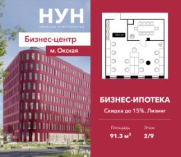 Продается офисное помещение площадью 91.3 м² в бизнес-центре НУН от застройщика Доминанта.