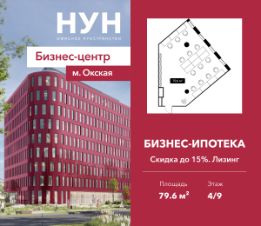 Продается офисное помещение площадью 79.6 м² в бизнес-центре НУН от застройщика Доминанта.