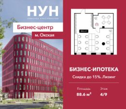 Продается офисное помещение площадью 88.6 м² в бизнес-центре НУН от застройщика Доминанта.