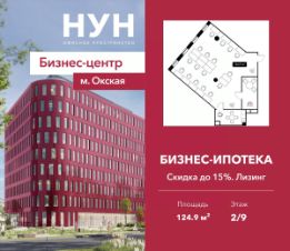 Продается офисное помещение площадью 124.9 м² в бизнес-центре НУН от застройщика Доминанта.