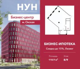 Продается офисное помещение площадью 118.9 м² в бизнес-центре НУН от застройщика Доминанта.