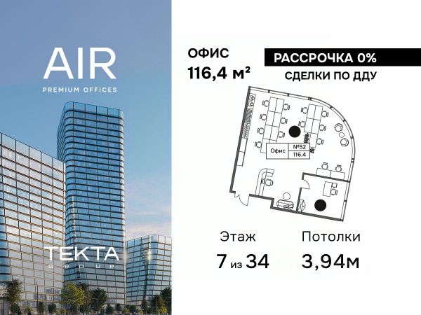 Продается помещение свободного назначения 116.40 м² на 7 этаже бизнес-центра AIR.