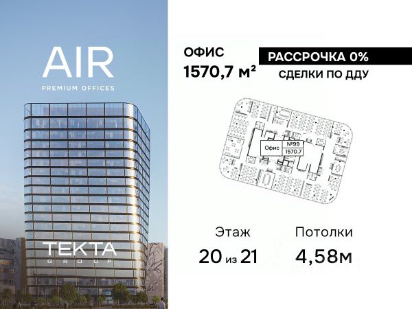 Продается помещение свободного назначения 1570.70 м² на 20 этаже бизнес-центра AIR.