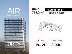 Продается помещение свободного назначения 758.20 м² на 18 этаже бизнес-центра AIR.