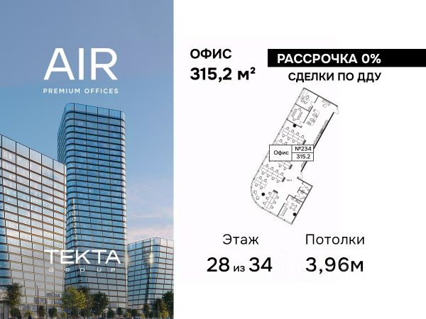 Продается помещение свободного назначения 315.20 м² на 28 этаже бизнес-центра AIR.