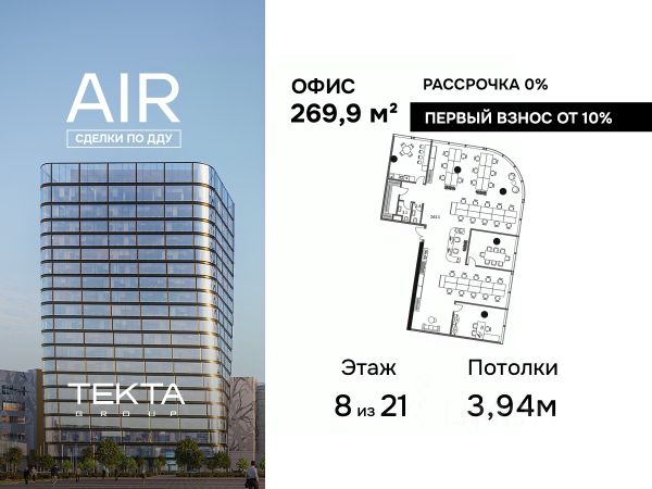 Продается помещение свободного назначения 269.90 м² на 8 этаже бизнес-центра AIR.