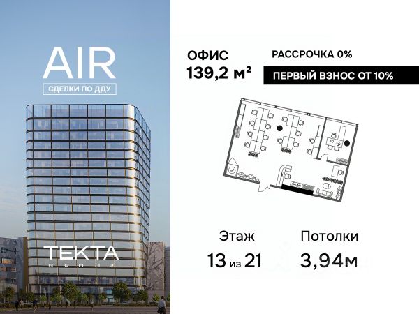 Продается помещение свободного назначения 139.20 м² на 13 этаже бизнес-центра AIR.