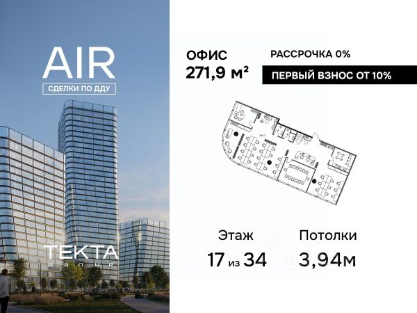 Продается помещение свободного назначения 271.90 м² на 17 этаже бизнес-центра AIR.