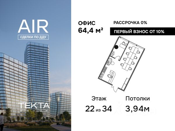 Продается помещение свободного назначения 64.40 м² на 22 этаже бизнес-центра AIR.
