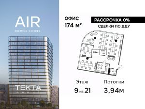 Продается помещение свободного назначения 174.00 м² на 9 этаже бизнес-центра AIR.