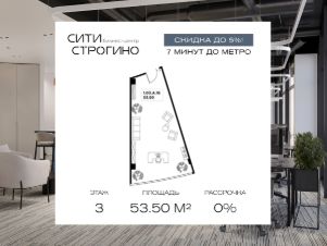 В продаже от застройщика комфортабельный Smart-офис площадью 114.8 м² на 3 этаже в премиальном бизнес-центре Сити Строгино. Срок сдачи - 2028 год.