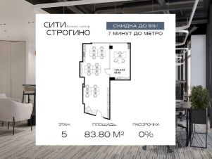 В продаже от застройщика комфортабельный Private-офис площадью 113.3 м² на 9 этаже в премиальном бизнес-центре Сити Строгино. Срок сдачи - 2028 год.