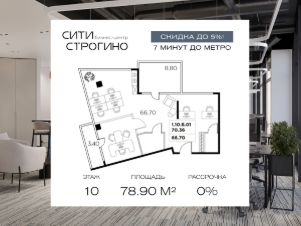 В продаже от застройщика комфортабельный Home-офис площадью 68.8 м² на 10 этаже в премиальном бизнес-центре Сити Строгино. Срок сдачи - 2028 год.