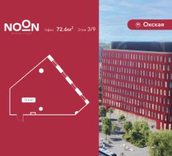 Продается офисное помещение площадью 72.6 м2 на 3 этаже в бизнес-центре NOON от