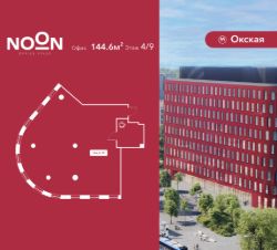 Продается офисное помещение площадью 144.6 м2 на 4 этаже в бизнес-центре NOON от