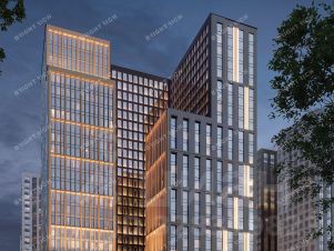 Офисное помещение 114.5 кв. м в бизнес-центре "АФИ2В Тагильская". Прямая продажа, без комиссии. Объект на стадии активного строительства, готовность ко въезду уточняется по запросу.