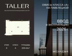 Бизнес-пространство TALLER расположено в центре Павелецкого делового района. Оно станет первым за 14 лет офисным проектом А класса в данной локации, что делает его уникальн...