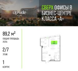 В продаже офисное помещение в строящемся бизнес-центре класса "А" Upside Кунцево. Срок ввода в эксплуатацию — IV квартал 2025 года.