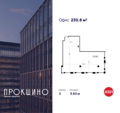 Продаётся офисное помещение площадью 236.7 кв. м. в Бизнес-квартал "Прокшино". Без отделки. Окна с видом на улицу. Высота потолков 3.6 м. Выделенная электрическая мощность — 19 кВт. Общий вход с улицы. Стоимость помещения — 50 251 410 руб. Способы оплаты и более...