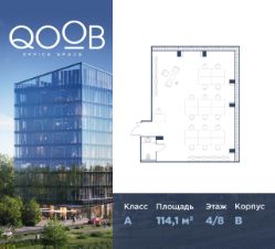 Продается офисное помещение площадью 114,1 м2 на 4 этаже, в бизнес-центре QOOB от застройщика Dominanta.