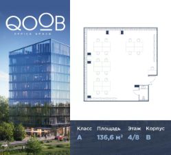 Продается офисное помещение площадью 136,6 м2 на 4 этаже, в бизнес-центре QOOB от застройщика Dominanta.