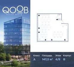 Продается офисное помещение площадью 147,5 м2 на 4 этаже, в бизнес-центре QOOB от застройщика Dominanta.