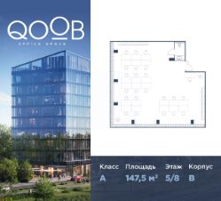 Продается офисное помещение площадью 147,5 м2 на 5 этаже, в бизнес-центре QOOB от застройщика Dominanta.