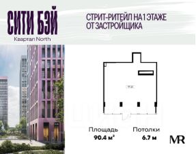 Продаётся коммерческое помещение свободного назначения с отдельным входом на 1 этаже жилого комплекса Сити Бэй от застройщика. Площадь помещения 90,4 м².