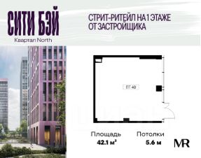 Продаётся коммерческое помещение свободного назначения с отдельным входом на 1 этаже жилого комплекса Сити Бэй от застройщика. Площадь помещения 42,1 м².