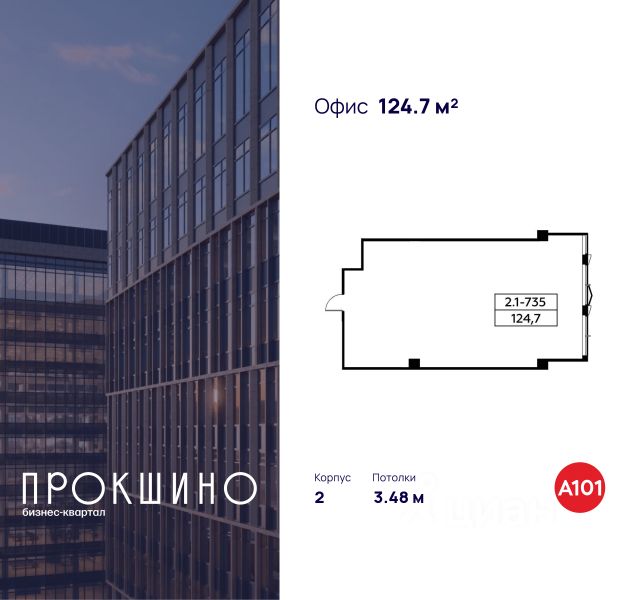 Продаётся офисное помещение площадью 124.7 кв. м. в Бизнес-квартал "Прокшино". Без отделки. Окна с видом на улицу. Высота потолков 3.48 м. Выделенная электрическая мощность — 10 кВт. Отдельный вход с улицы. Стоимость помещения — 30 678 694 руб. Способы оплаты и...