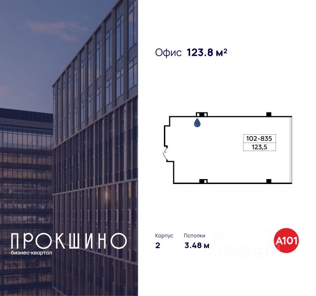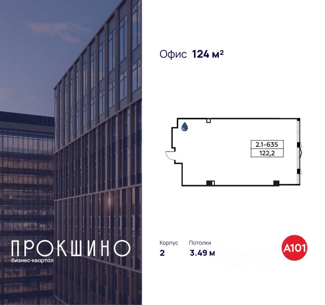 Продаётся офисное помещение площадью 124 кв. м. в Бизнес-квартал "Прокшино". Без отделки. Окна с видом на улицу. Высота потолков 3.49 м. Выделенная электрическая мощность — 10 кВт. Общий вход с улицы. Стоимость помещения — 30 070 000 руб. Способы оплаты и более...