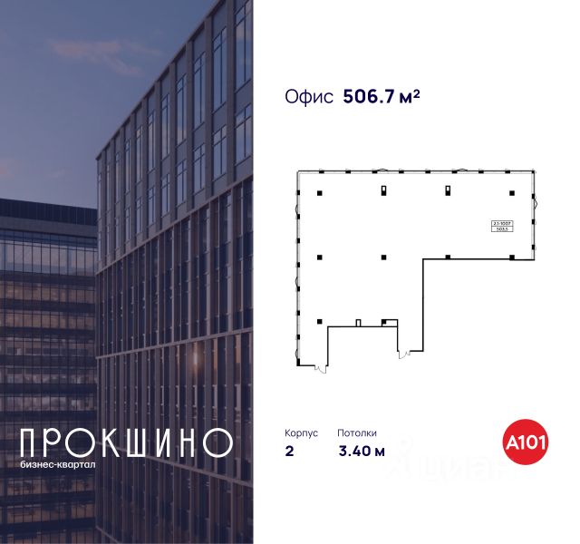 Продаётся офисное помещение площадью 506.7 кв. м. в Бизнес-квартал "Прокшино". Без отделки. Окна с видом во двор и на улицу. Высота потолков 3.4 м. Выделенная электрическая мощность — 45 кВт. Общий вход с улицы. Стоимость помещения — 101 932 839 руб. Способы опл...