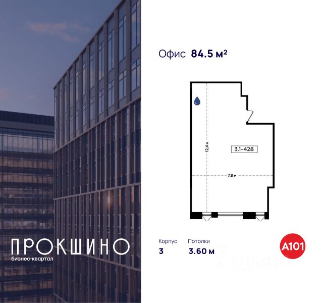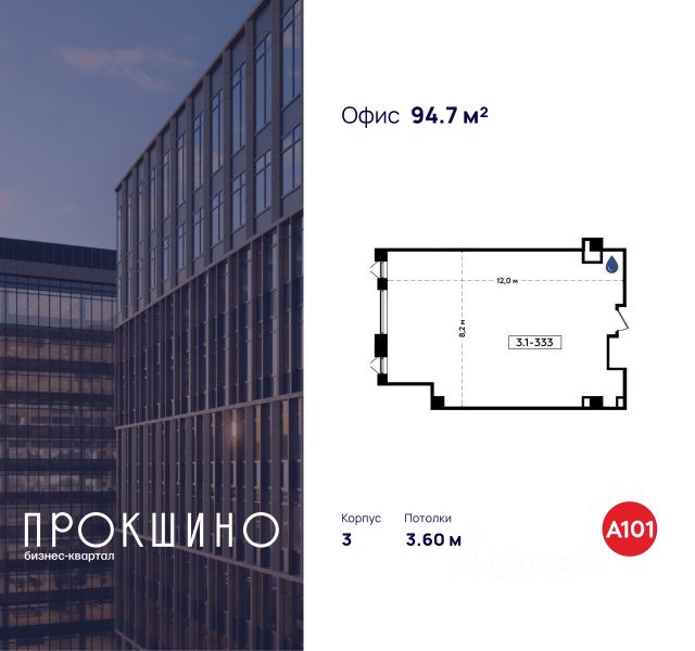 Продаётся офисное помещение площадью 84.5 кв. м. в Бизнес-квартал "Прокшино". Без отделки. Окна с видом на улицу. Высота потолков 3.6 м. Выделенная электрическая мощность — 8 кВт. Общий вход с улицы. Стоимость помещения — 20 204 795 руб. Способы оплаты и более п...