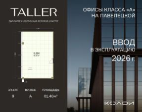 Комфортабельный офис площадью 81.28 м² на 9 этаже инновационного делового центра TALLER.