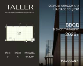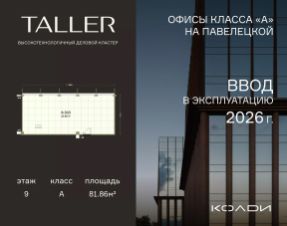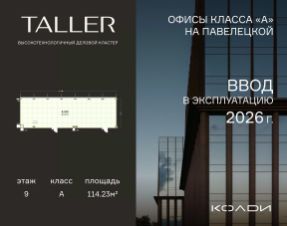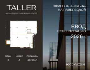 Бизнес-пространство TALLER расположено в центре Павелецкого делового района. Оно станет первым за 14 лет офисным проектом А класса в данной локации, что делает его уникал...
