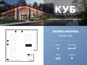 Продается офисное помещение площадью 136.6 м² в бизнес-центре КУБ класса "А" от застройщика Доминанта.