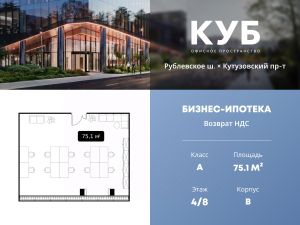 Продается офисное помещение площадью 75.1 м² в бизнес-центре КУБ класса "А" от застройщика Доминанта.