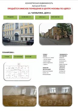 Сергей. Эксклюзивное предложение в самом историческом центре Москвы! Продается офисное помещение на третьем этаже старинного особняка построенного по индивидуальному проекту. Вид из окна на посольство Латвии. Развитая инфраструктура района, высокий пешеходный и т...