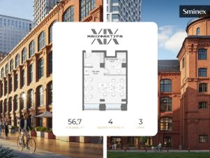 Офис 56,5 кв.м. в камерном историческом здании из красного кирпича - здании Московской шерстоткацкой мануфактуры. Ориентирован на Юго-запад. Большие арочные окна, стены из оригинального красного кирпича, потолки высотой 4,03 м. Офис оснащен современными системами...