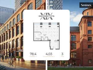 Офис 78,4 кв.м. в камерном историческом здании из красного кирпича - здании Московской шерстоткацкой мануфактуры. Ориентирован на Северо-восток. Большие арочные окна, стены из оригинального красного кирпича, потолки высотой 4,03 м. Предусмотрена мокрая точка. Офи...