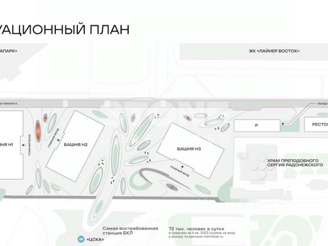В продаже здание для размещения ресторана в составе премиального бизнес-центра STONE Ходынка 1. Расположение на первой линии Ходынского бульвара и витринное остекление в два уровня обеспечат превосходную просматриваемость здания изнутри. Целевая платежеспособная аудитория уже сформирована - она включает жителей ЖК бизнес- и премиум-класса ("Лайнер", "Гранд-Парк", "Прайм Парк" и др.), а также резидентов премиальных бизнес-центров, расположенных поблизости. Прямой выход к парку "Ходынское поле" привлечет гостей района, заинтересованных в качественном отдыхе. Фасад здания, выполненный из натурального камня, подчеркнет статусность ресторана и высокий уровень сервиса. Расширенная обеденная зона со вторым светом (высота потолков - до 10 м) подарит гостям особое чувство простора и позволит насладиться изысканной атмосферой. Также предусмотрена возможность размещения летней веранды площадью ~150 м² вдоль фасада здания, что привлечет дополнительный клиентский трафик в летнее время. Благодаря свободной планировке можно гибко адаптировать пространство в зависимости от концепции оператора. Распределенные входы позволят организовать потоки сотрудников и посетителей. Важным преимуществом станет продуманная логистика - зоны загрузки-погрузки обеспечат стабильность рабочих процессов и бесперебойную работу заведения. Преимущества здания: - Потолки высотой до 10 м в зоне второго света - Панорамное остекление - Высокий уровень естественного освещения - Места для размещения вывесок - Пассажирский лифт и открытая лестница для гостей ресторана STONE - девелопер коммерческой и жилой недвижимости классов бизнес и премиум в Москве с 19-летним опытом. Сегодня занимает лидирующую позицию на офисном рынке (рейтинг РБК). В портфеле девелопера представлено 3 млн кв. м построенных, строящихся и проектируемых объектов, из которых более 1 млн кв. м находятся в стадии строительства. Компания имеет самый масштабный проектный портфель офисной недвижимости класса А на московском рынке (данные NF Group) и возглавляет топ устойчивых девелоперов, согласно исследованию FResearch - Forbes. В настоящий момент девелопером представлено 16 бизнес-центров класса А, а также 3 жилых комплекса бизнес+ класса. ID.23979