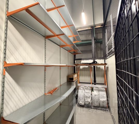 Продается кладовое помещение в ЖК "Тушино 2018". Стенки обшиты профнастилом, установлен стеллаж. Удобный доступ как с парковки так и с лифтовой зоны.