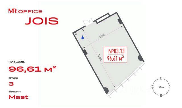 Премиальные офисы класса "А" в Большом Сити, прямая продажа от девелопера MR Office. Предлагается офисное помещение 96.61 м² на 3 этаже БЦ Jois. JOIS — новые офисные башни А класса от MR Office. JOIS расположен в 10 минутах от Москва-Сити в перспективном деловом районе "Большого Сити" и органично сочетает архитектуру, инфраструктуру и комфорт для бизнеса любого масштаба. Транспортная доступность: — 3 минуты до Звенигородского шоссе — 5 минут до ТТК — 10 минут до Москва-Сити и Садового кольца — 5 минут пешком до МЦК "Хорошёво" — В окружении 4х станций метро: "Полежаевская", "Хорошёвская", "Народное Ополчение", "Звенигородская"(открытие в 2027 г.) Ключевые преимущества JOIS: — Вариативность офисных решений: от 96 м2 до целого здания — Авторская архитектура от международного бюро Genpro — Две башни: MAST (179 м, 43 этажа) и CREDO (64 м, 14 этажей) — Панорамное остекление, потолки 3,65 м — Благоустройство 1,3 Га от студии S&P с зонами для отдыха — 2 500 м² торговой инфраструктуры, кафе, рестораны, фуд-холл — Умные технологии: усиление связи, Wi-Fi, интеллектуальные лифты, контроль доступа — Амфитеатр, коворкинг на свежем воздухе и общественные зоны для нетворкинга и командной работы — 400 машино-мест, удобный выезд и комфортный паркинг Особые условия приобретения: — Рассрочка 0% с ПВ от 30% до ввода — Возврат НДС
