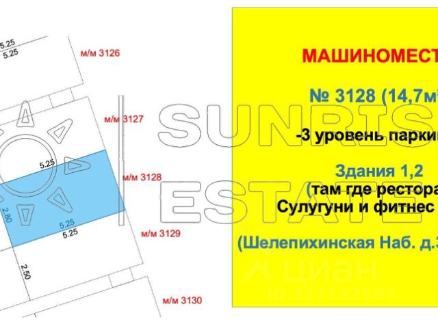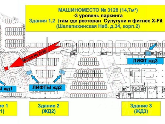 Уникальное предложение! Продается ОДНО машиноместо! Место 3128 расположенное на -3 уровне паркинга. Площадь 14,7м² (ширина 2,8 м / длинна 5,25) ОСОБЕННО удобно для жильцов Здания 1 и Здания 2. Для жильцов здания 3 также подходит. адрес расположения Шелепихинская Наб. д.34, корп.2 (Здание 1,2,3) Въезд в паркинг Р2 (с улицы Шеногина) -один виток вниз по спирали!